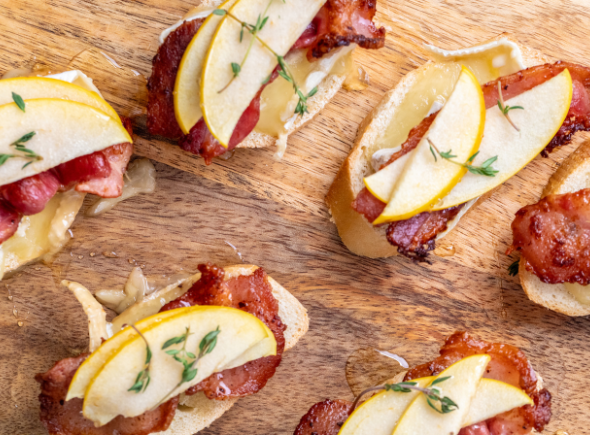 ○ Place 1–2 thin Opal apple slices on top of each.